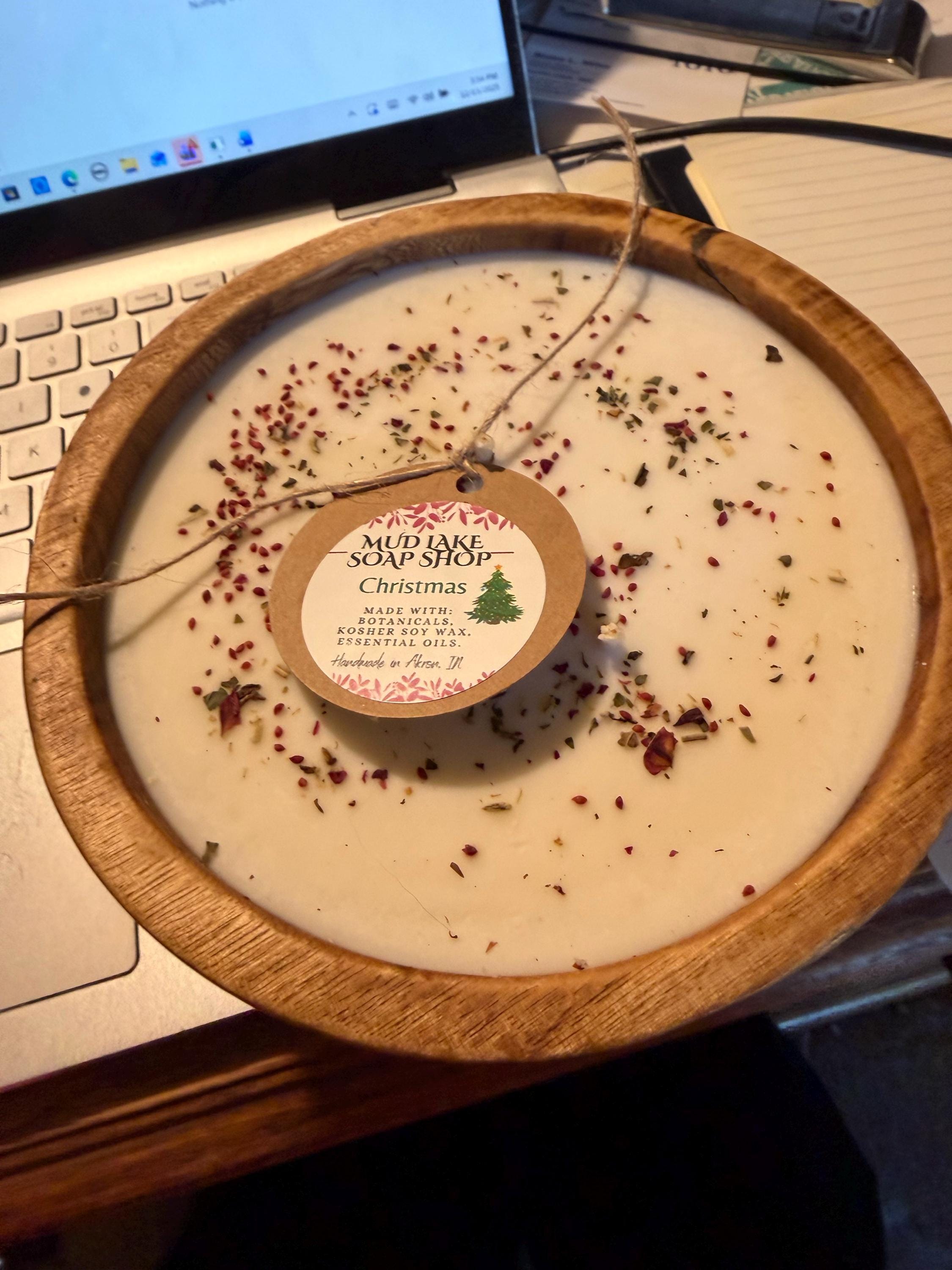 I hand-pour these candles myself. They are made with a pure, 100% natural kosher soy wax with no additives. They are topped with natural botanicals. They have no chemicals and are paraffin and petroleum-free. The bowls are made from Jacaranda wood, which is known to be one of the most beautiful woods in the world. I purchase these beautiful bowls from a small shop in Eastern Kenya, a not-for-profit that supports the elderly women of the village.